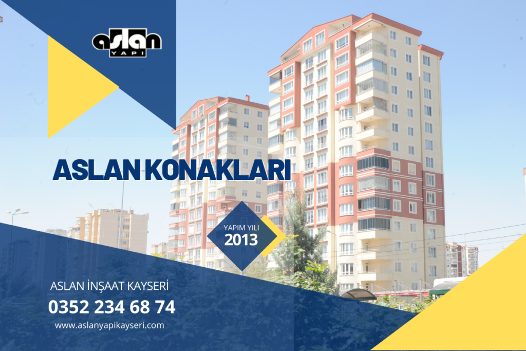Kalite , Güven ve Tecrübe sloganı ile Kayseri’de 25 proje tamamlayan Aslan Yapı, Talas ilçesinde devam eden projesi ile faaliyetlerine devam etmektedir. 1991 yılından itibaren Kaliteden ödün vermeyen , yapıları ve müşteri hizmetleri ile güven veren firmamız Tecrübesini modern inşaat sektörü ile entegre etmektedir.