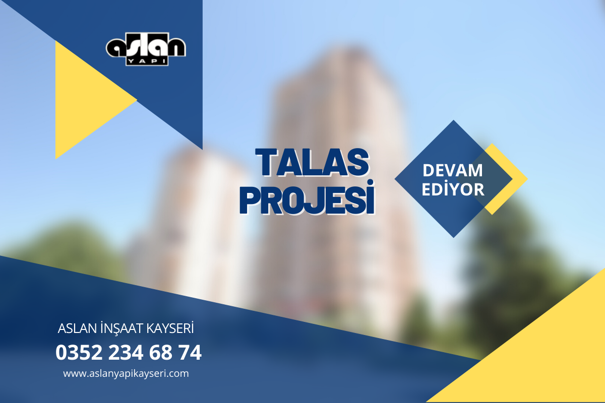 TALAS PROJESİ 21 Eylül 2022 TALAS PROJESİ 2022 Yılında tamamlanmıştır. Kalite , Güven ve Tecrübe sloganı ile Kayseri’de projelerine devam etmektedir. Detaylar
