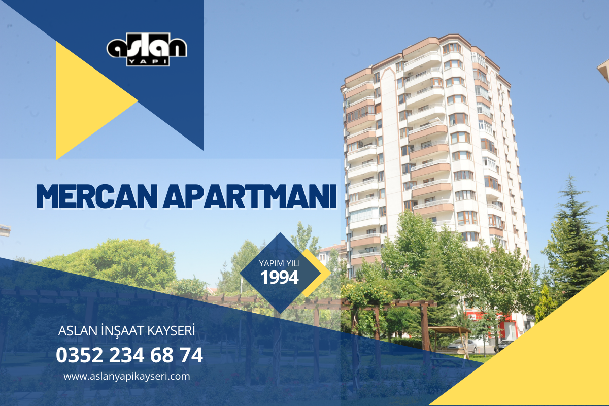 MERCAN APARTMANI 1994 Yılında tamamlanmıştır. Kalite , Güven ve Tecrübe sloganı ile Kayseri’de projelerine devam etmektedir.