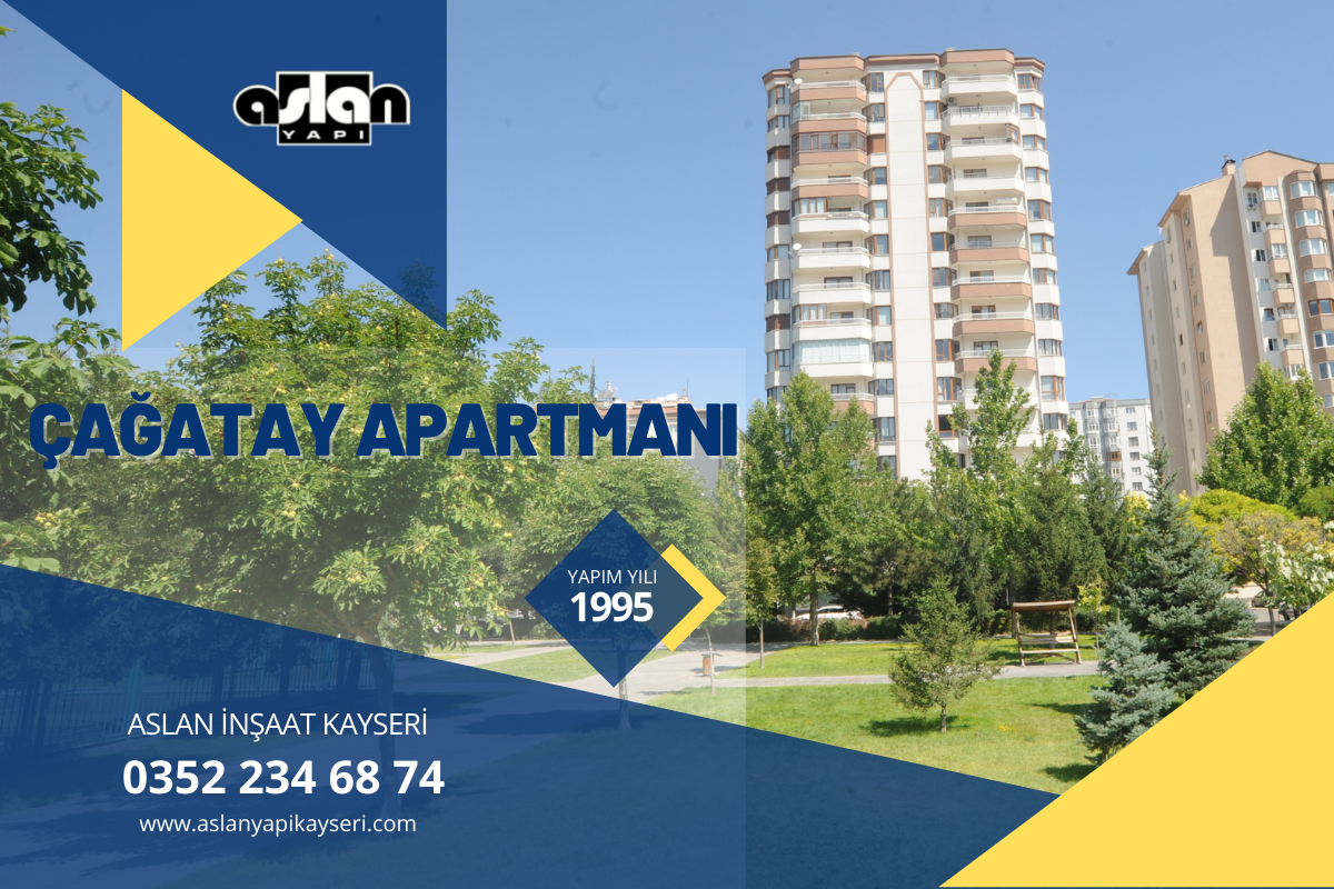 ÇAĞATAY APARTMANI 1995 Yılında tamamlanmıştır. Kalite , Güven ve Tecrübe sloganı ile Kayseri’de projelerine devam etmektedir.