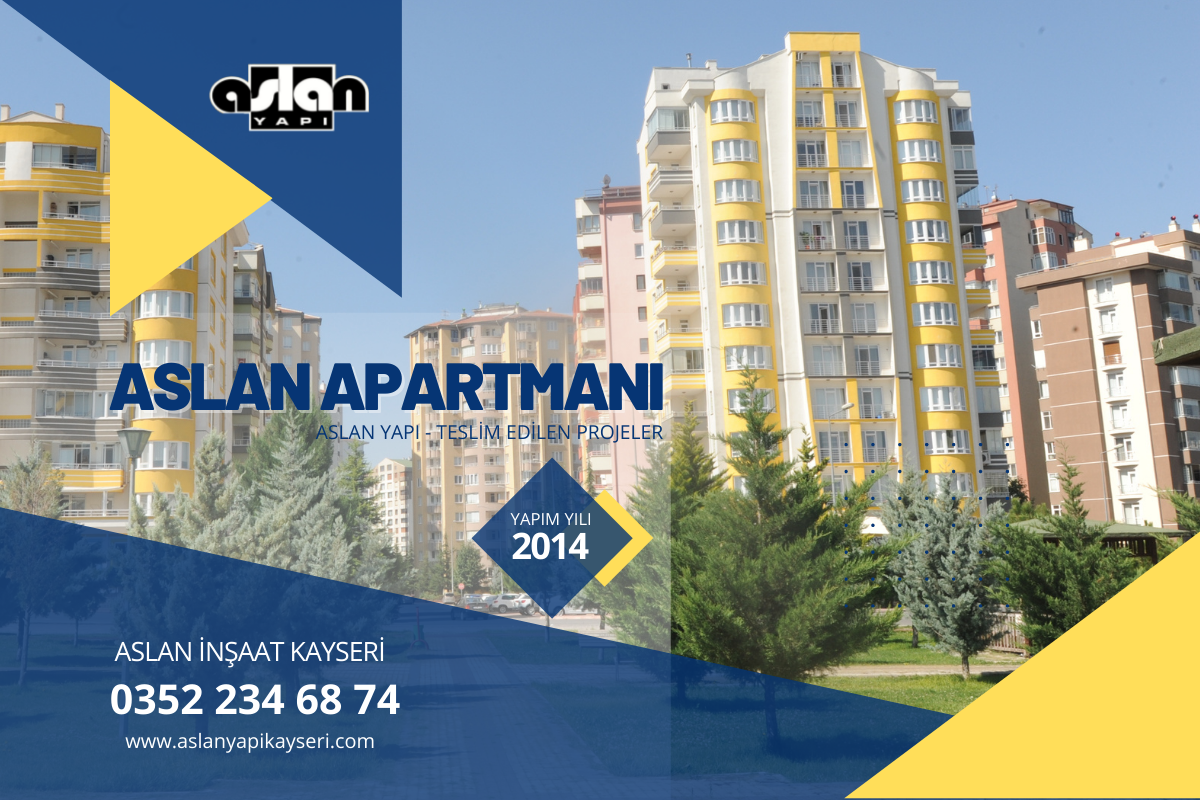 ASLAN APARTMANI 2014 Yılında tamamlanmıştır. Kalite , Güven ve Tecrübe sloganı ile Kayseri’de projelerine devam etmektedir.