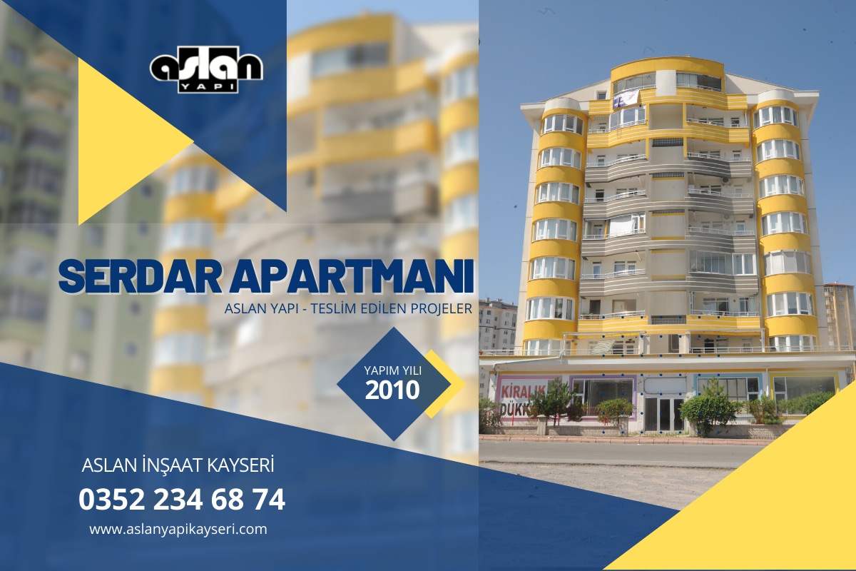 SERDAR APARTMANI 2010 Yılında tamamlanmıştır. Kalite , Güven ve Tecrübe sloganı ile Kayseri’de projelerine devam etmektedir.