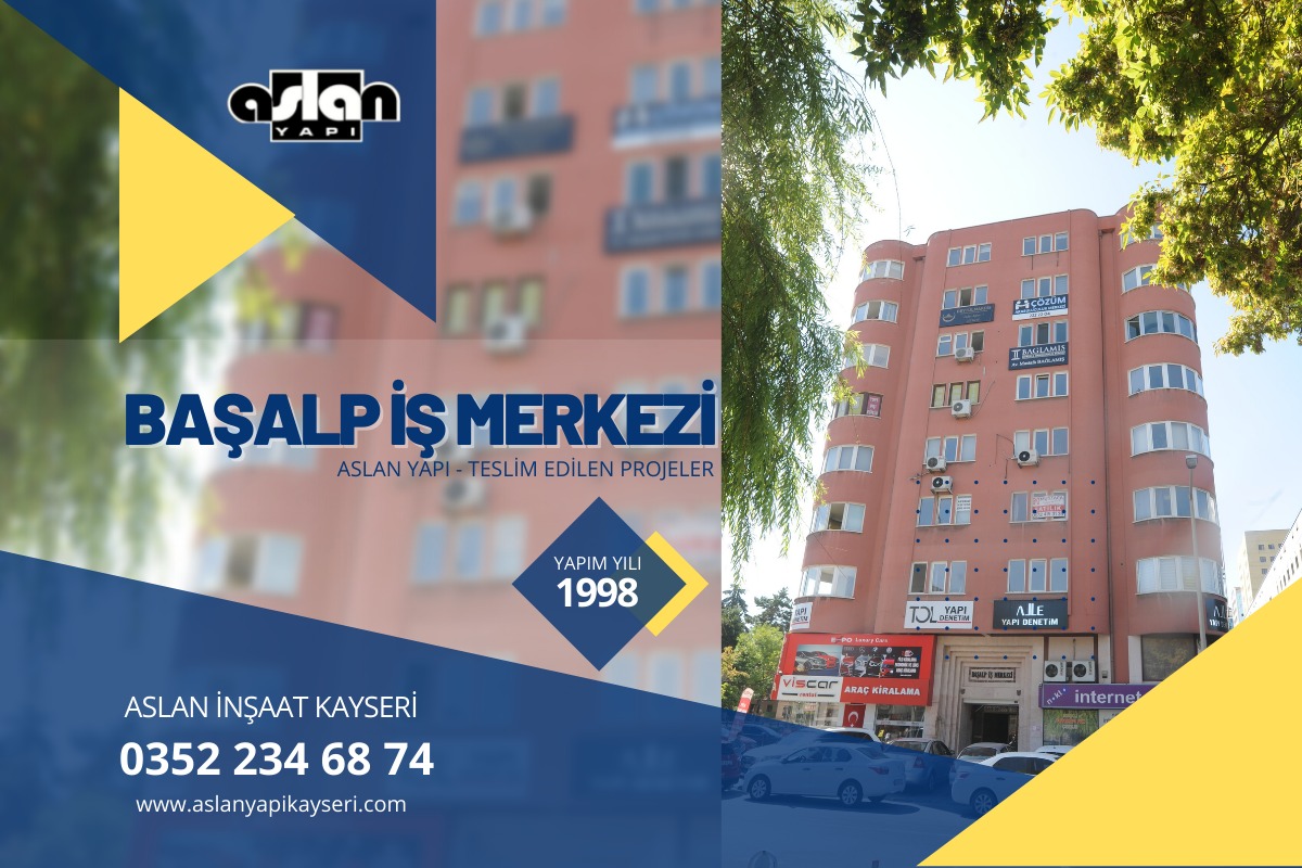 BAŞALP İŞ MERKEZİ 1998 Yılında tamamlanmıştır. Kalite , Güven ve Tecrübe sloganı ile Kayseri’de projelerine devam etmektedir.